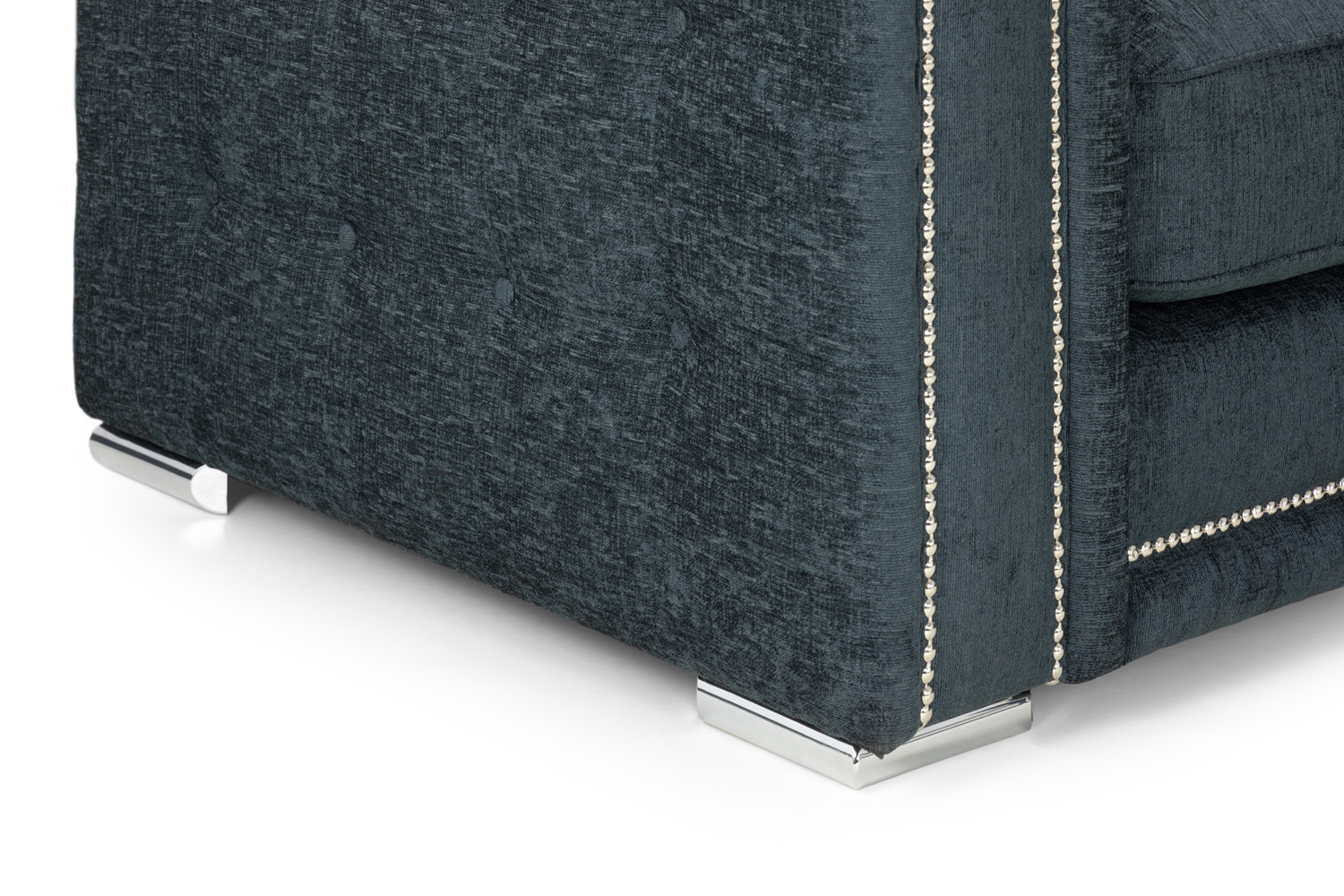 With studded arms and a soft black upholstery the Bentley corner sofa is a wonderful focal point for your living room. Providing a sumptuous ambience with metallic to elevate the entire look.